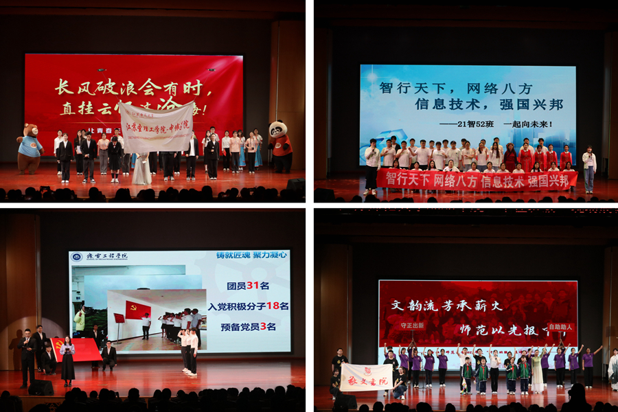 展評現場,由各個學院推薦的23個班級圍繞“班風正、學風好、學子優、班委強、榮譽多”等五個方面,以主題匯報、情景劇、朗誦和歌舞表演等多種表現形式展示了班級建設的突出成績和特色亮點,充分展示出班集體昂揚向上的精神風貌、奮發有為的青春力量和矢志不渝的責任擔當,彰顯了各學院在班級建設方面的創新舉措和在人才培養方面的顯著成效。各班級的精彩展示贏得現場陣陣掌聲。
