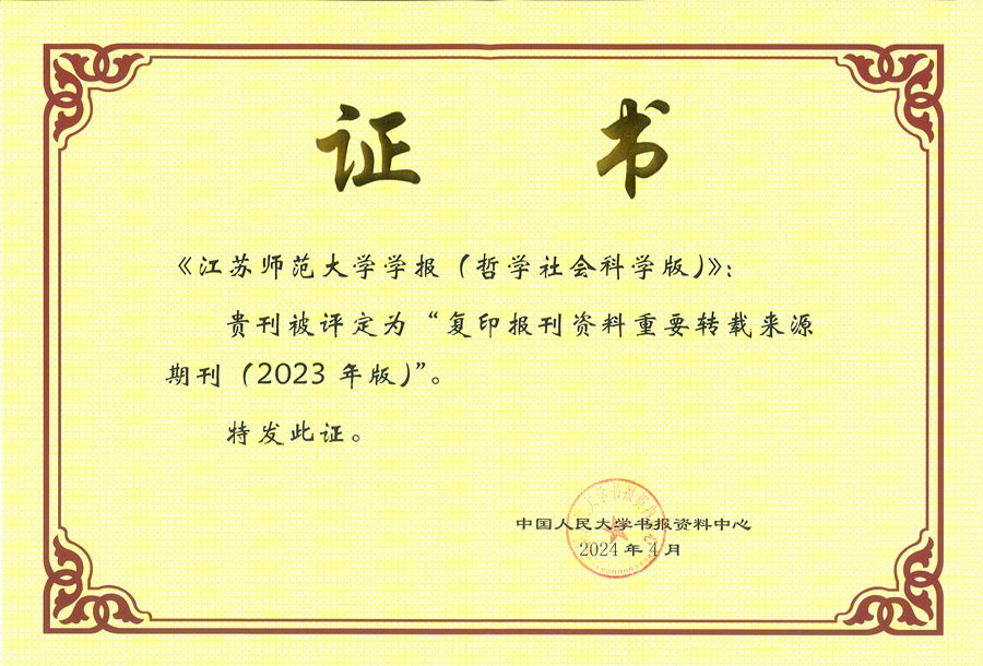 4月25日,中國(guó)人民大學(xué)書(shū)報(bào)資料中心發(fā)布“復(fù)印報(bào)刊資料重要轉(zhuǎn)載來(lái)源期刊(2023年版)”總名錄,《江蘇師范大學(xué)學(xué)報(bào)(哲學(xué)社會(huì)科學(xué)版)》入選“復(fù)印報(bào)刊資料重要轉(zhuǎn)載來(lái)源期刊(2023年版)”,為蘇中蘇北地區(qū)唯一獲此殊榮的高校學(xué)報(bào)。