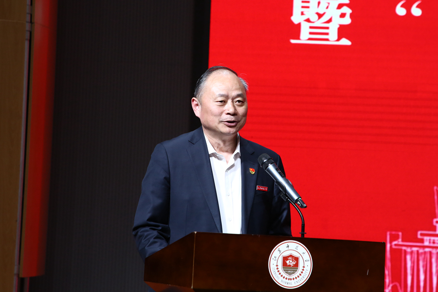 大會以嘹亮的國歌、團歌開篇,分為“青春·榜樣”“青春·信仰”“青春·奮進”三個篇章。方忠代表校黨委向我校青年師生致以節日祝賀和誠摯問候,并充分肯定了過去一年我校各級團組織團結帶領廣大青年取得的各項成績。他指出,廣大青年踔厲奮發、勇毅前行,涌現出一大批工作積極、成績突出的先進集體和先進個人,為我校建設特色鮮明、國內一流、國際知名的高水平師范大學貢獻了青春力量。方忠向我校青年提出三點希望,一是要堅定理想信念,努力涵養愛黨愛國的青春品格;二是要練就過硬本領,積極錘煉砥礪奮斗的青春意志;三是要勇于挺膺擔當,持續匯聚建功立業的青春動能。鼓勵廣大青年要勇做走在時代前列的奮進者、開拓者、奉獻者,自覺融入黨和人民團結奮斗的歷史洪流,用青春和汗水創造出屬于江蘇師范大學青年的嶄新篇章。