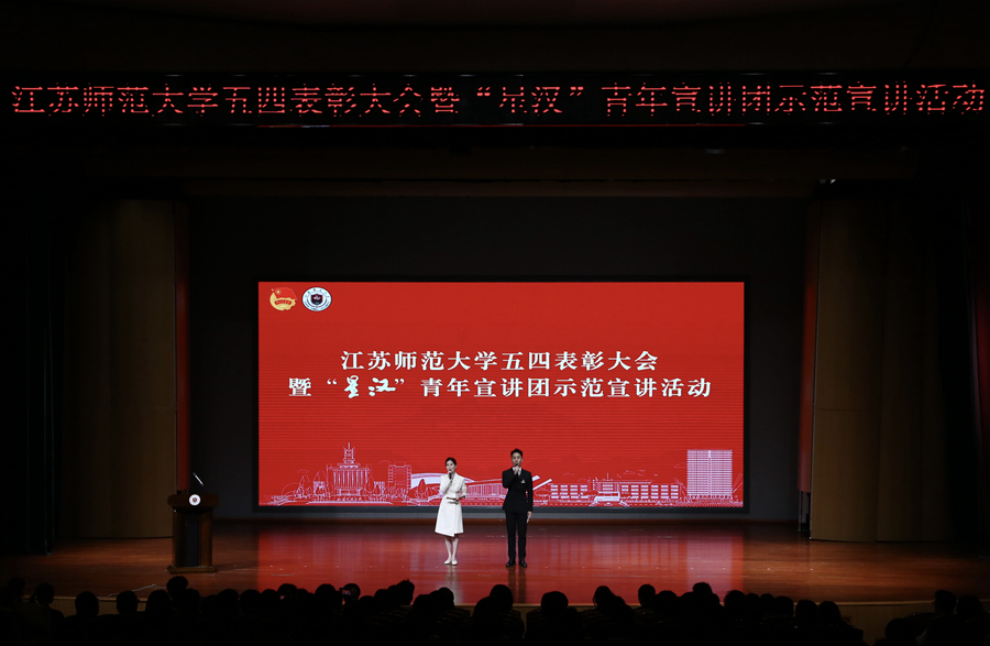 表彰大會上,我校團委成立的“星漢”青年宣講團通過激情昂揚、內涵深刻的宣講,展現了新時代我校青年砥礪奮進、擔當奉獻的青春風采。生命科學學院樊昌宇同學以《我“熱辣滾燙”的大學生活》為題,分享了他從堅持鍛煉有效減重,到投身科創實踐榮獲國獎,到專注學習科研最終保研至北京大學的追夢故事;法學院詹其飛同學的宣講《在新戰場續寫新榮光》講述了他參軍入伍、搶險救災,重返校園、奉獻基層的奮斗故事,展現了永葆軍人底色、勇擔時代重任的優良作風;馬克思主義學院尹子宸同學的宣講《踐行“兩山”理論,建設美麗中國》聚焦家鄉生態發展,闡述了我國生態文明建設從理論到實踐的一系列深刻變化;文學院余永芳老師在《從中國教育的“朋友圈”看“一帶一路”》的宣講中,從教育視角分享了中國積極推動“一帶一路”教育合作,在人才培養、人文交流等方面展現的大國擔當;教育科學學院于戰宇老師以《我的成長故事,它有色彩》為題,以自身求學經歷為主線,講述了他秉持謙和、不斷嘗試、潛心鉆研,堅持不懈、永不放棄的多彩成長故事;語言科學與藝術學院胡曉波同學和他的手語翻譯同學以《無聲世界,有聲夢想》為題,分享了他勵志求學、自立自強,以公益之力扶聾助殘、以樂觀精神詮釋無限可能的奮斗歷程;生命科學學院劉偉杰老師的宣講《從實驗室到空間站的逐夢堅守》分享了其帶領團隊開展空間站生物被膜防控研究,為中國空間站的長期安全穩定運行貢獻師大力量的科研報國故事。大會在小合唱江蘇師范大學青年版《上春山》中圓滿結束,積極展現了我校青年意氣風發的奮進姿態。