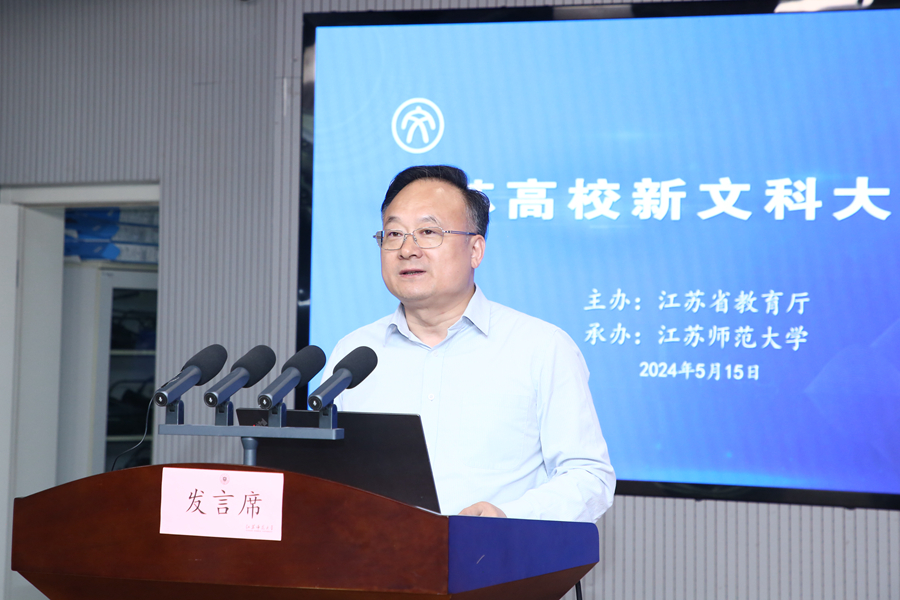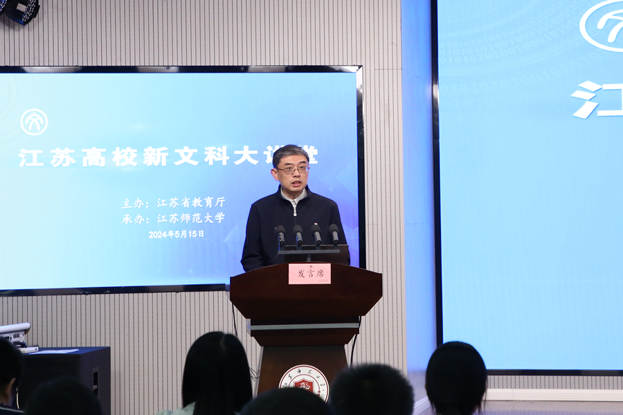 楊樹兵在活動開幕式上講話。他指出,推進江蘇高校新文科建設要積極落實新文科建設“四大計劃”。2023年10月,江蘇出臺《關于加快推進本科高校新文科建設的意見》,聚焦推動江蘇高校文科教育邁向更高水平,提出實施“四大計劃”,為江蘇新文科建設繪制了遠景藍圖、規劃了路線方案、制定了任務目標。全省高校要全面挖掘江蘇文化底蘊,廣泛邀約學界、業界名家大師,著力打造高水平、多模塊、一校一品、一校多品、特色共享的新文科大講堂。要扎實推進新文科教育教學改革。各高校要積極把握新文科建設的本質內涵和時代特征,積極以新理念、新方法、新技術為驅動,實現對文科教育使命目標的重新定位和質量變革;圍繞實施江蘇新文科交叉人才培養先鋒區建設計劃,加大文科基礎學科拔尖人才培養基地建設力度,打造文科拔尖人才自主培養的江蘇方案。要切實加強學科交叉融合育人。各高校要用好交叉融合的“催化劑”,積極探索跨學科、跨專業的文科教育組織新模式,布局一批新興和交叉學科專業,推動文科專業之間、文科與理工農醫學科的深度交叉融合再出新。