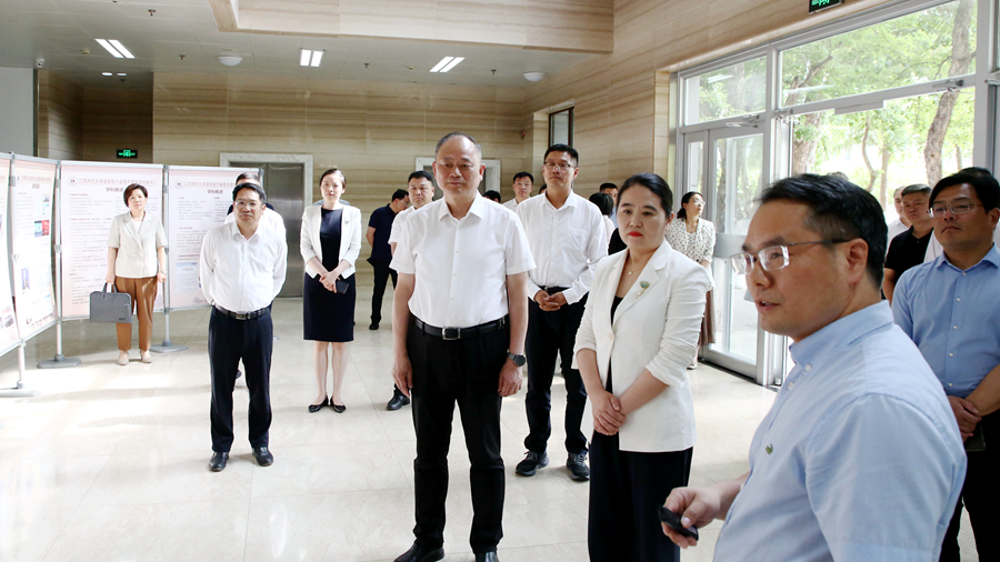 陳婕一行先后來到我校語言能力省部共建國家級協同創新中心、國家大學科技園、江蘇省先進激光材料與器件重點實驗室、化學與材料科學學院等處實地調研,詳細了解科學研究、產教融合、成果應用等情況,希望與我校深化合作、攜手共進,推動更多技術成果在云龍區落地轉化。實地考察后召開了校地融合發展座談會。