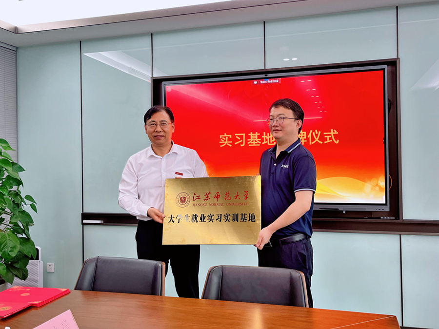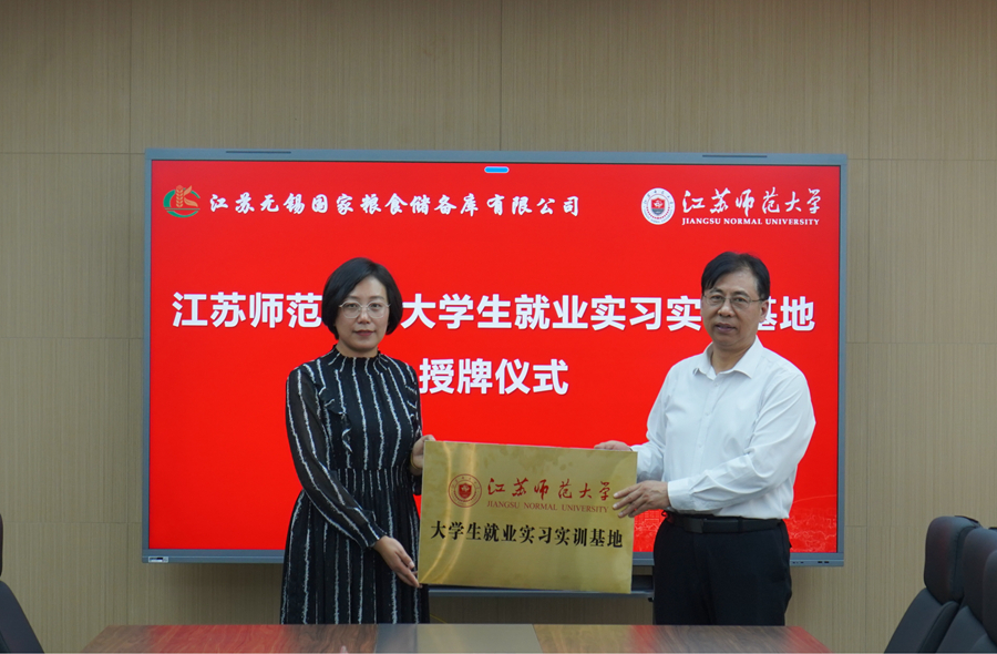 經過充分洽談,學校與各企業達成合作共識,并舉行了“江蘇師范大學大學生就業實習實訓基地”授牌儀式。