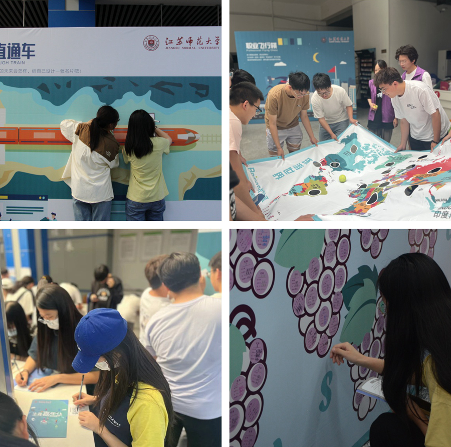 本次活動將職業(yè)生涯規(guī)劃理論元素進行集成,為學(xué)生提供各種直接參與、有所體驗、激發(fā)行動的大型互動游戲,共設(shè)自我探索、職業(yè)探索、能力充電和為夢想前行四大區(qū)域,包括“性格彩虹圖”“職業(yè)飛行棋”“生涯啟發(fā)器”等10個游戲關(guān)卡。每一個闖關(guān)游戲背后均有相關(guān)的生涯理論支撐,層層闖關(guān)。同學(xué)們在體驗活動樂趣的同時,逐步增強學(xué)生的主觀感受,激發(fā)學(xué)生職業(yè)規(guī)劃興趣,促進其生涯自助。