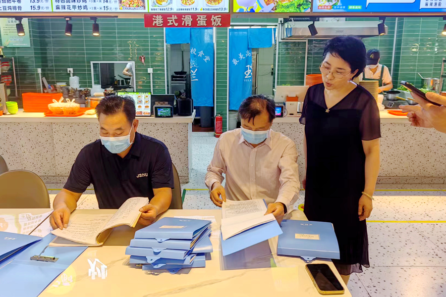 張其飛一行先后來到泉山五食堂、玉蘭融合餐廳、憶江南風味餐廳、泉山七食堂以及云龍食堂。每到一處,張其飛都仔細了解食堂經營運行情況,重點檢查各食堂(餐廳)在原料采購保管、烹飪加工、食品留樣、剩余食品處理、餐具洗消、天然氣安全使用以及油煙管道清理等方面的工作情況。同時與就餐同學親切交談,詢問學生對餐廳環境、飯菜價格、飯菜品種、飯菜質量等方面的意見和建議。