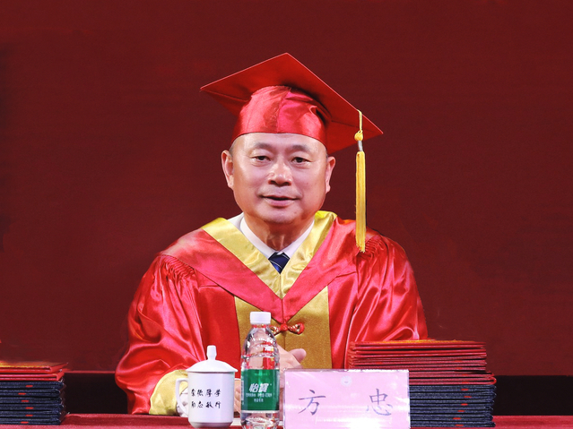 副校長、校學位評定委員會副主席杜增吉宣讀學位授予決定。校黨委書記方忠為博士畢業生代表正冠撥穗并授予學位。校領導、校學位評定委員會委員為全體2024屆碩士畢業研究生正冠撥穗,祝賀他們順利畢業。