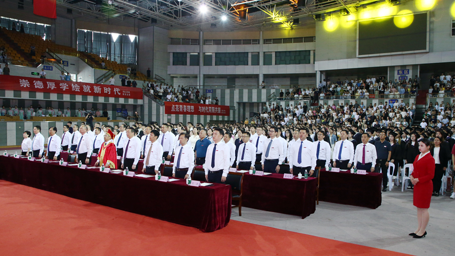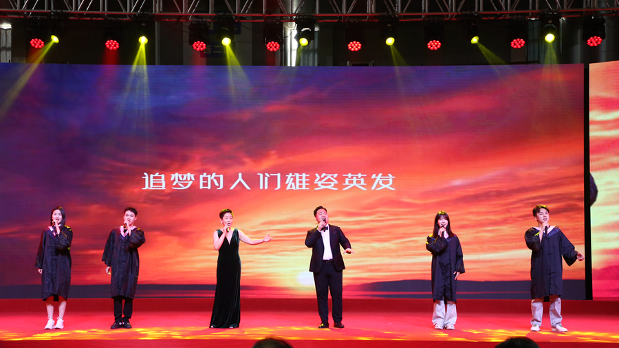 全體在徐校領(lǐng)導(dǎo),校學(xué)位評定委員會全體委員、校學(xué)生工作委員會全體委員、各學(xué)院主要負(fù)責(zé)同志、黨委副書記、專職輔導(dǎo)員、畢業(yè)班班主任、教師代表、校友代表、家長代表、2024屆本科畢業(yè)生共同參加了典禮。在微電影《入?!泛烷_場舞《唱支山歌給黨聽》之后典禮開始。本屆典禮分為《耀青春·夢啟航》《話成長·展未來》《砥礪行·譜華章》三個篇章。