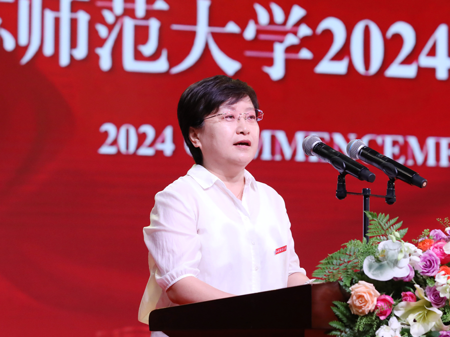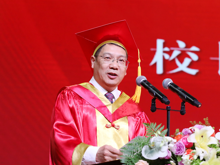 校學(xué)位評定委員會主席、校長周汝光在典禮上致辭,代表全校師生員工,向圓滿完成學(xué)業(yè)的4882名本科畢業(yè)生同學(xué)表示最熱烈祝賀,向一路關(guān)心培養(yǎng)廣大同學(xué)成長成才的家長和老師致以崇高敬意和衷心感謝。他指出,四年的時光,一生的回憶。四年大學(xué)時光,同學(xué)們見證了彼此的成長和母校的發(fā)展,母校和師長們也見證了每個同學(xué)的成長與蛻變。習(xí)近平總書記寄語年輕一代,要爭做有理想、敢擔(dān)當(dāng)、能吃苦、肯奮斗的新時代好青年,奮力書寫為中國式現(xiàn)代化挺膺擔(dān)當(dāng)?shù)那啻浩?。同學(xué)們即將背上行囊、揚帆起航,作為新時代青年,要堅持終身學(xué)習(xí),提升自我,篤行不?。灰獡肀o限可能,錘煉韌性、敢想敢干;要胸懷國之大者,激揚青春、砥礪奮斗。最后,周汝光深情叮囑全體2024屆本科生,無論今后身在何處,師大永遠(yuǎn)是廣大同學(xué)的堅強后盾和精神家園,希望同學(xué)們前程似錦,一往無前。