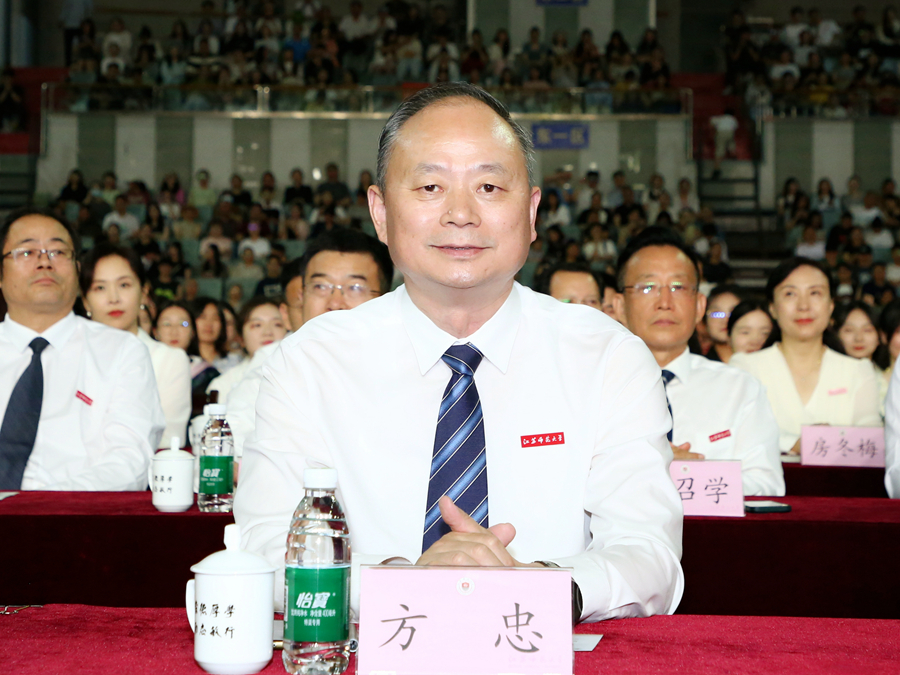 為弘揚尊師重教的優(yōu)良傳統(tǒng),激勵廣大同學(xué)積極投身教育事業(yè),傳承“大先生”奮斗精神,江蘇師范大學(xué)南京校友會和江蘇春雨教育集團(tuán)有限公司在我校設(shè)立“江蘇師范大學(xué)十佳師范生”榮譽評選項目。校黨委常委、副校長董曉臣宣讀了“十佳師范生”表彰決定。校黨委常委、副校長商亮為獲獎同學(xué)頒發(fā)了榮譽證書,南京校友會代表嚴(yán)軍為獲獎同學(xué)頒發(fā)榮譽獎牌。