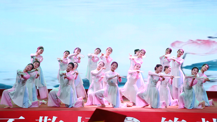他們似池中初荷,歷經(jīng)沐浴滋養(yǎng),漸漸嶄露頭角,他們在時光的孕育中,實現(xiàn)了從青澀向成熟的蛻變。在舞蹈《初荷》的曼妙舞姿中,典禮開啟了第三個篇章——《砥礪行·譜華章》。