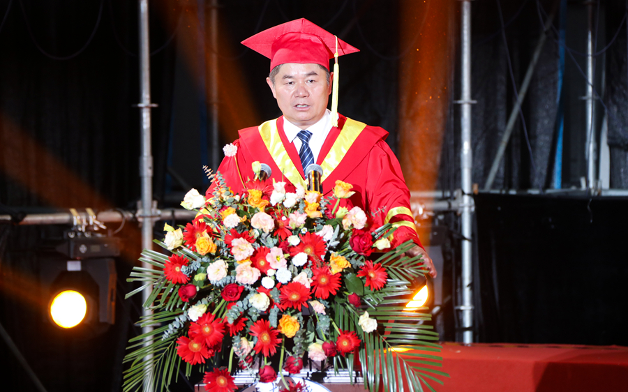 校長周汝光以《肩負時代使命譜寫青春華章》為題,深情寄語畢業(yè)生。他指出,近年來科文學院辦學實力日益雄厚,服務地方能力顯著增強,全國獨立學院綜合排名不斷攀升。學校始終是科文學子實現(xiàn)學術夢想的理想之地,一定會為每位有志深造的科文學子提供更多機遇和更好平臺,也將一如既往地支持科文學院的建設和發(fā)展,關注、關心科文學子的成長成才,永遠做科文學院和科文學子的堅強后盾。他希望廣大學子永葆“崇德、求真、至善、尚美”的科文品質(zhì),不斷磨練意志、錘煉品格,以豁達向上的姿態(tài)邁向人生征途,追求更有高度、更有境界的人生,在新的人生征程中牢記黨和人民的期望與囑托,在擔當中歷練,在盡責中成長,勇做走在新時代前列的奮進者、開拓者、奉獻者。