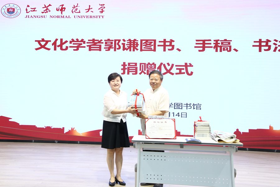 6月14日上午,我校在路演大廳舉辦了文化學者郭謙圖書、手稿、書法作品捐贈儀式。校黨委常委、副校長婁崢嶸,著名文化學者、中國書畫院院士郭謙及夫人邢志玖,郭謙在徐好友程淼先生,校圖書館主要負責同志及相關(guān)工作人員和學生代表共同見證了捐贈儀式。