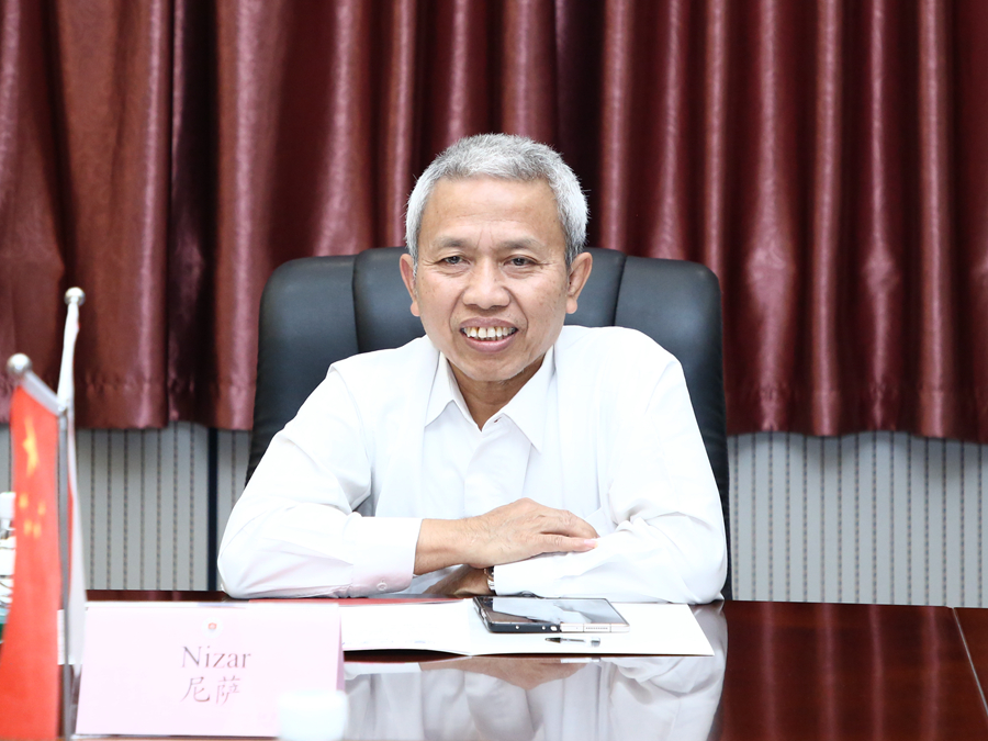 尼薩對我校的熱情接待表示感謝,并介紹了瓦利松戈國立伊斯蘭大學的辦學情況。他指出,中國與印尼兩國合作歷史悠久。瓦利松戈國立伊斯蘭大學是印尼最大、最有影響力的伊斯蘭大學,學校非常重視國際合作交流。此次訪問旨在能推動印尼學生來我校留學、科研合作及人文交流等項目,為增進兩國人民友誼做出貢獻。