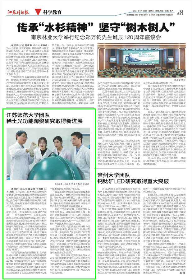 江蘇師范大學(xué)團(tuán)隊(duì)稀土光功能陶瓷研究取得新進(jìn)展
