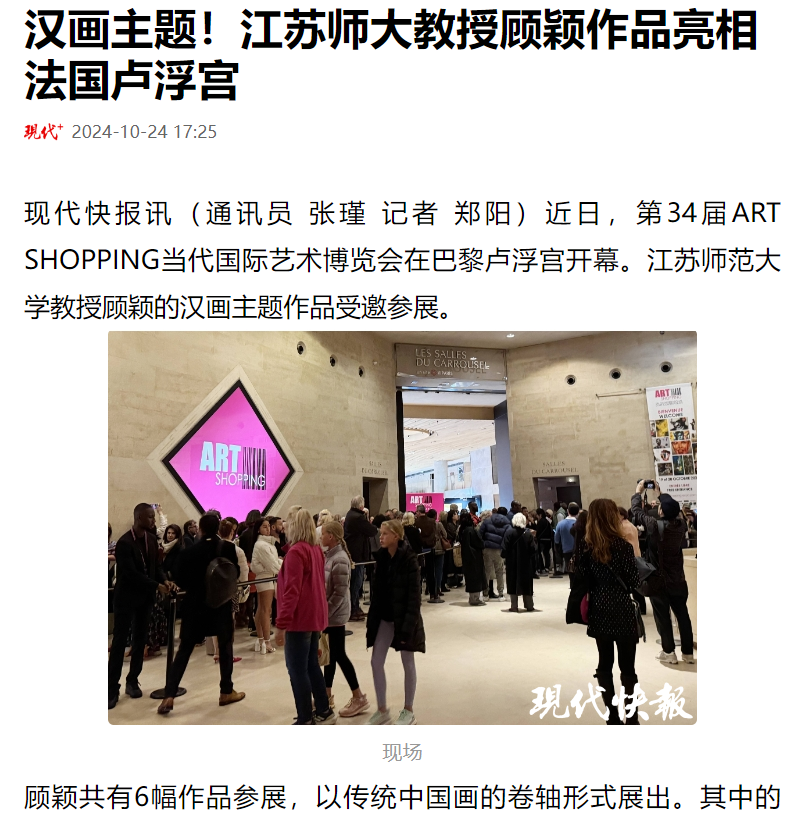 現代快報訊(通訊員 張瑾 記者 鄭陽)近日,第34屆ART SHOPPING當代國際藝術博覽會在巴黎盧浮宮開幕。江蘇師范大學教授顧穎的漢畫主題作品受邀參展。