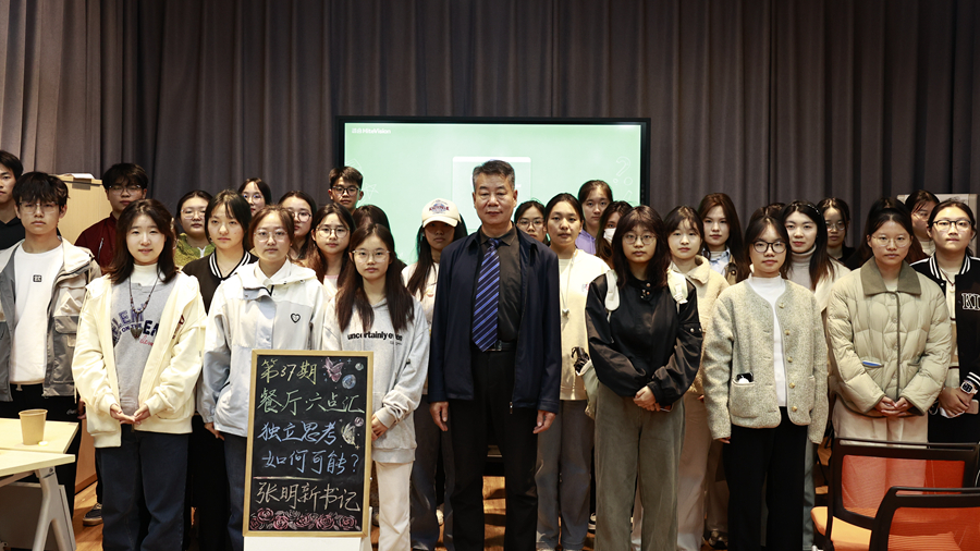 11月9日下午,第37期“餐廳?六點匯”活動在泉山校區“餐廳·六點匯”實踐基地舉行。法學院黨委書記張明新就“獨立思考如何可能”這一主題與在場同學進行交流。