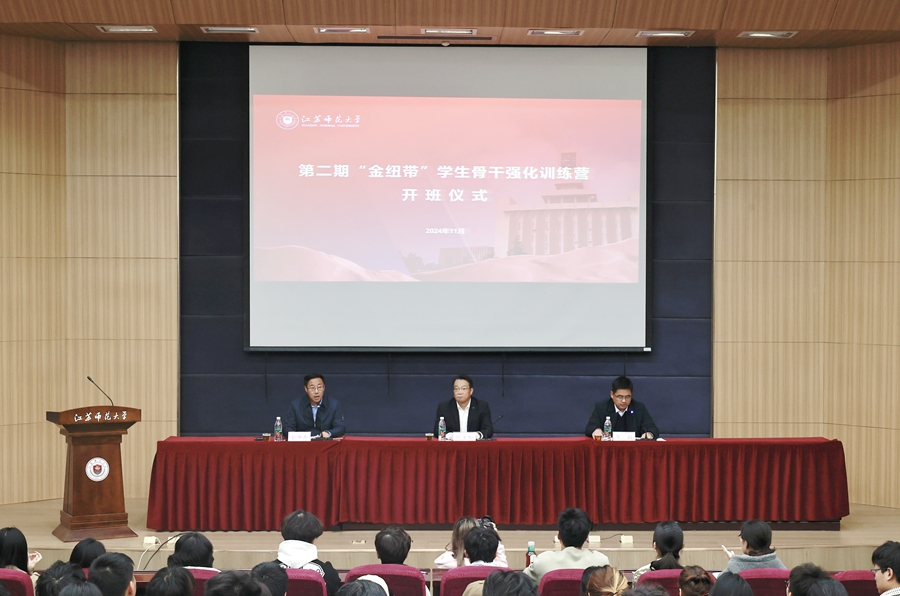 11月17日上午,我校第二期“金紐帶”本科學(xué)生骨干強(qiáng)化訓(xùn)練營(yíng)開(kāi)班典禮在西教二號(hào)樓101報(bào)告廳舉行,校黨委常委、副校長(zhǎng)張玉勤出席活動(dòng)并講話,學(xué)生工作處相關(guān)負(fù)責(zé)人、2024級(jí)全體新生班班長(zhǎng)、校自管會(huì)部分學(xué)生干部160余人參加了活動(dòng)。
