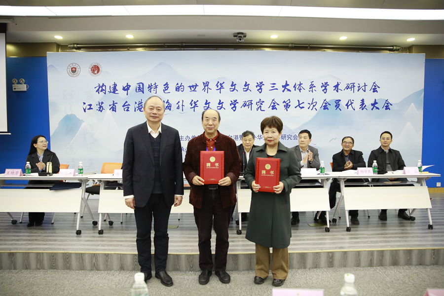 11月23日,由江蘇省臺港暨海外華文文學研究會主辦,江蘇師范大學文學院承辦的“構建中國特色的世界華文文學三大體系學術研討會暨江蘇省臺港暨海外華文文學研究會第七次會員代表大會”在我校召開。校黨委常委、副校長婁崢嶸,江蘇省臺港暨海外華文文學研究會會長方忠,徐州市社科聯副主席宋宜平等領導出席會議并致辭。來自江蘇省社科院、南京大學、南京師范大學、南通大學、江蘇師范大學等單位的專家學者共50余人參加會議。