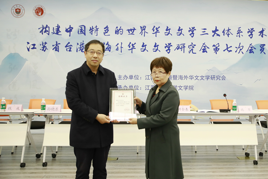 會議期間還舉行了圖書資料捐贈儀式,江蘇省社科院劉紅林研究員向我校世界華文文學研究中心捐贈了藏書,文學院相關負責同志向劉林紅頒發了捐贈證書。