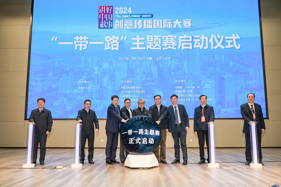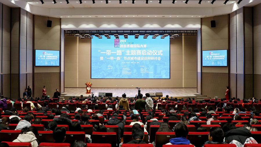 11月29日,2024“講好中國故事”創意傳播國際大賽“一帶一路”主題賽啟動儀式暨“一帶一路”節點城市建設徐州研討會在我校潘安湖校區學術報告廳舉行。