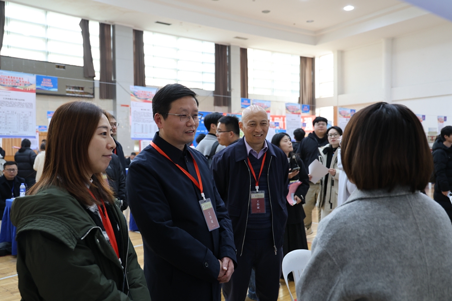 商亮在招聘會現場走訪了用人單位。他與用人單位親切交流,了解用人單位對師范生的專業素養、教學能力和實踐經驗方面的要求,并期待用人單位多挖掘聘用我校的優秀師范畢業生。同時,他鼓勵現場求職的畢業生要樹立積極求職心態,合理定位求職目標,拓展求職視野,把握關鍵機遇。