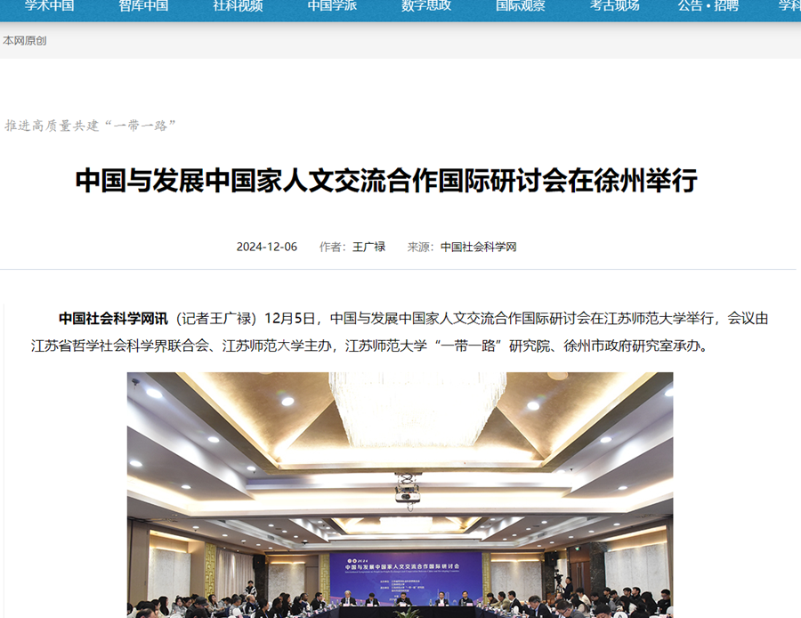 中國社會科學網訊(記者王廣祿)12月5日,中國與發展中國家人文交流合作國際研討會在江蘇師范大學舉行,會議由江蘇省哲學社會科學界聯合會、江蘇師范?學主辦,江蘇師范大學“一帶一路”研究院、徐州市政府研究室承辦。