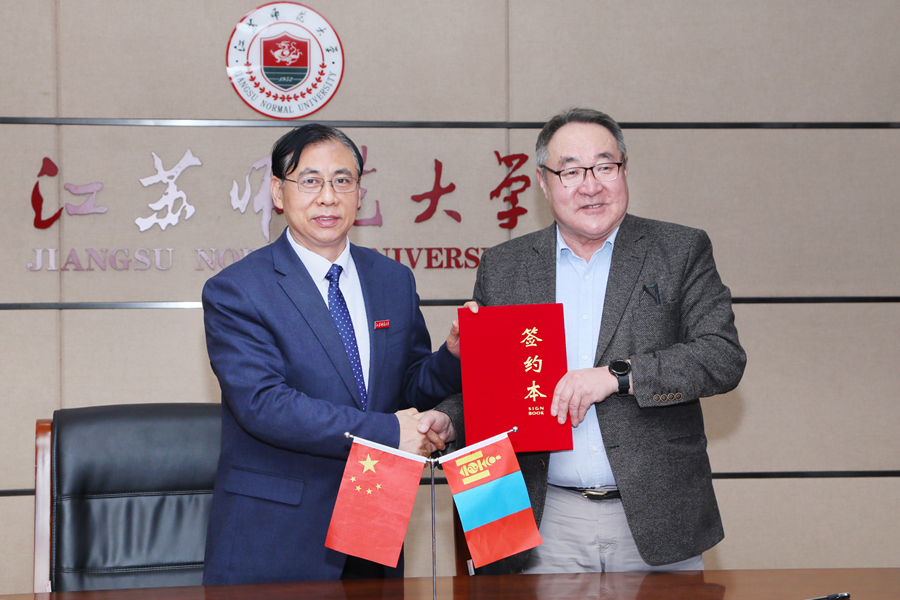 會上,雙方就人才培養、國際中文教育等議題進行了深入交流。杜增吉與邵隆高共同簽訂了校際友好合作協議。會后,蒙古電影藝術學院代表團一行參觀了校史館。