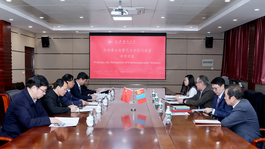 杜增吉對代表團的來訪表示熱烈歡迎,并介紹了學校的基本情況和國際化辦學情況。他表示,學校設有各類獎學金項目支持國際學生來校學習,歡迎蒙古電影藝術學院學生來校攻讀學位或者短期交流。希望雙方能在人才培養、文化交流、教師培訓等領域開展更為廣泛深入的合作。