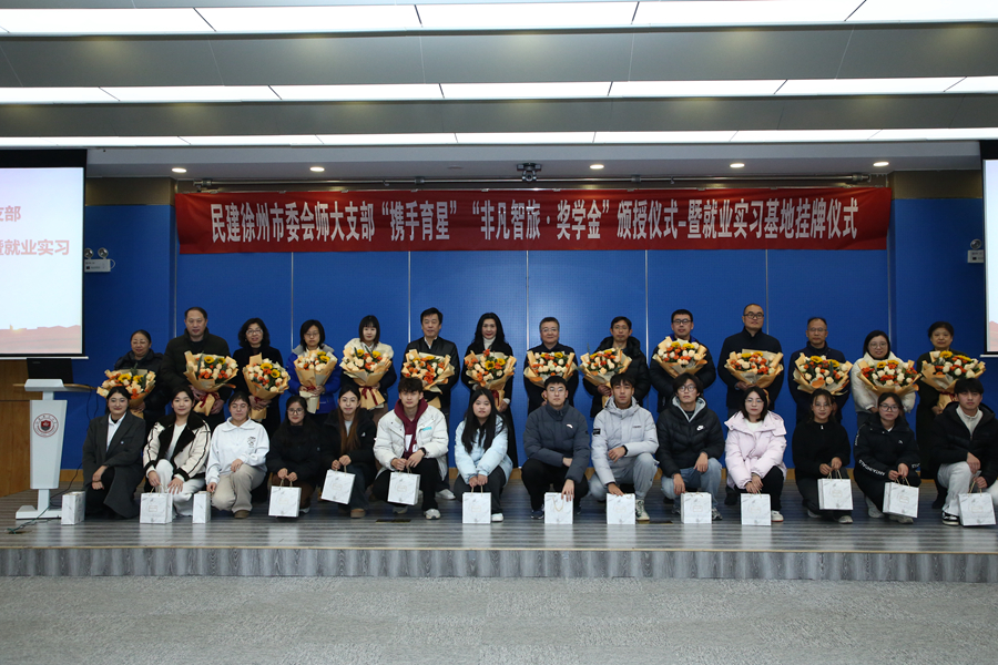 儀式上,民建江蘇師大支部主委周曉云匯報了“攜手育星獎學金”評定概況和實習實訓基地設置情況。林斌為攜手育星獎學金獲得者頒發了證書,芮國強為“攜手育星”活動的捐助企業江蘇非凡智旅信息技術有限公司頒發了捐資證書、為民族學生創業導師頒發了聘書并授牌所在企業為我校就業實習基地。