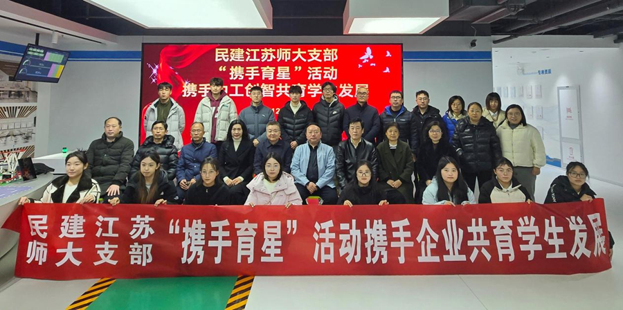 “攜手育星獎學金”頒授儀式開始前,民建支部教師代表與獲獎學生代表前往就業實習實訓基地——中工創智信息科技(江蘇)有限公司進行了參觀調研。