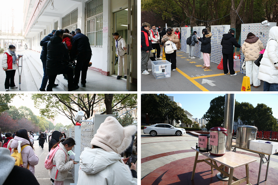 學校堅持以生為本、考生至上,全方位服務考生平安順利考試。會同屬地公安部門制定考點入口、出口區域交通管制方案,通過官方網站、微信公眾號等途徑發布考點考前公告,確保考生考前進場、考后離場安全順暢有序。為方便廣大考生順利應考,我校為特殊類考生啟用備用考場,幫助考生平穩順利參加考試。此外,通過研招網點對點發送通知,提醒每位考生有關入場安檢、手機管理等考試要求,并于考前組織志愿者進行智能安檢、存放手機等模擬演練,持續優化安檢流程。