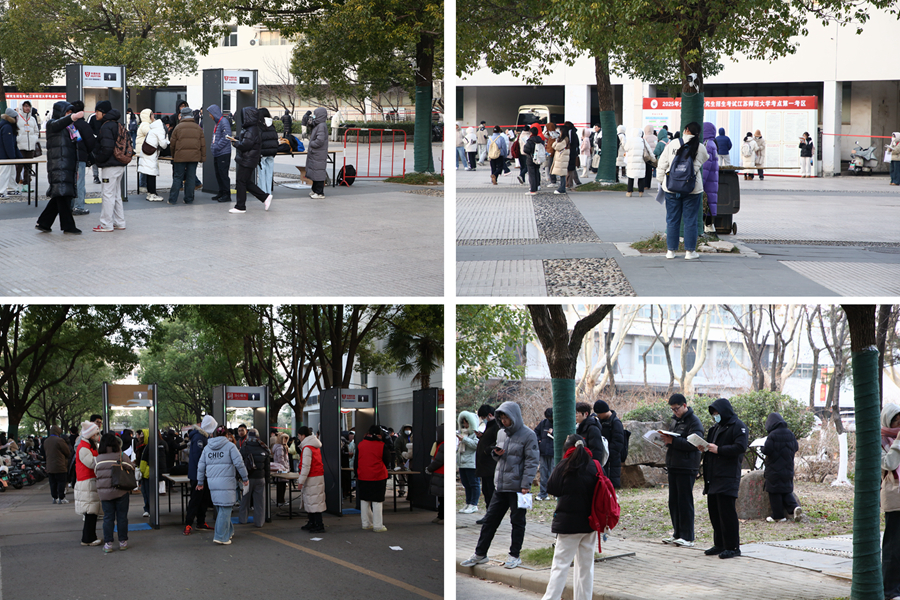 學校高度重視全國碩士研究生招生考試工作,認真落實教育部、省教育廳及教育考試院的部署,成立江蘇師范大學2025年研究生招生考試考點工作組織機構,下設考點考務組、安全保障組、宣傳組等9個工作小組,在主考領導下實施崗位負責制,緊盯關鍵環節,確保研考工作平穩有序??记?,學校多次召開考務工作部署會、協調會、培訓會,制定細致完善的工作方案和應急預案,嚴格規范推進各項工作,確保上級有關工作要求落實到位。開考當天,學校參加江蘇省2025年研考首日線上調度巡查活動,通過視頻匯報考點工作情況。