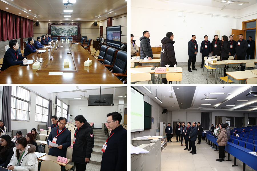 考試期間,校長杜增吉、副校長商亮、紀委書記閭浩等校領導帶隊到考生安檢區、手機存儲區、考區考務室等現場檢查指導工作,并走進標準化考場視頻監控室,對各考場考務情況進行視頻巡查,詳細了解各考場數據安全落實情況。校領導親切慰問了各考點全體考務工作人員和在學校堅守待命的自命題教師,對全體涉考工作人員冒嚴寒守崗位、認真履職盡責表示贊賞和感謝,并對考點組考工作予以充分肯定。