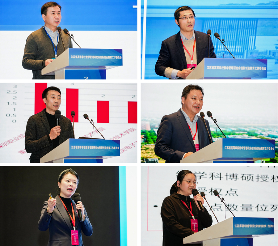 創新大賽成績優異高校和金獎突破高校經驗分享環節。南京理工大學雙創學院副院長趙茜,南京工程學院雙創學院院長王育榮,南京中醫藥大學教務處處長陳志鵬,南京藝術學院學生工作處處長、創新創業學院常務副院長仲社,蘇州城市學院教務處副處長顧榮慶,江蘇信息職業技術學院雙創學院院長蔣小三,分別作了經驗分享與交流。
