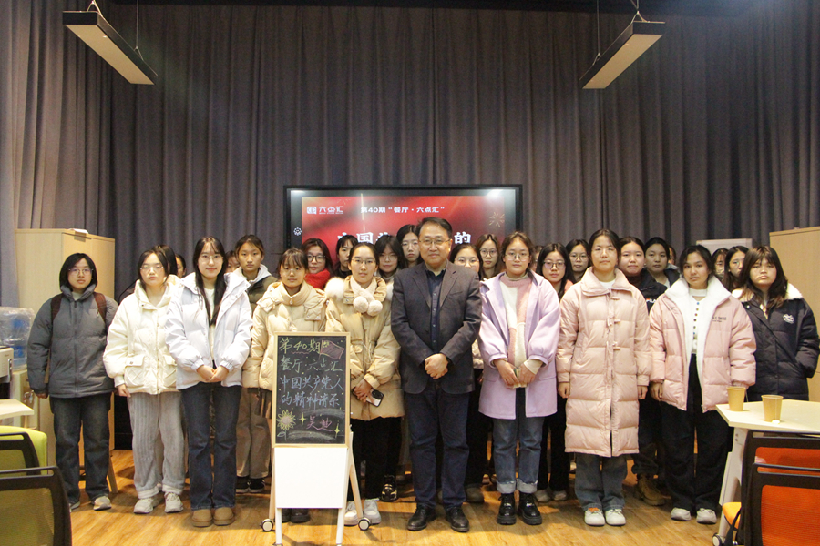 12月28日下午,第40期“餐廳·六點匯”活動在泉山校區“餐廳·六點匯”實踐基地舉行。公共管理與社會學院黨委書記吳迪就“中國共產黨人的精神譜系”這一主題與在場同學進行交流。